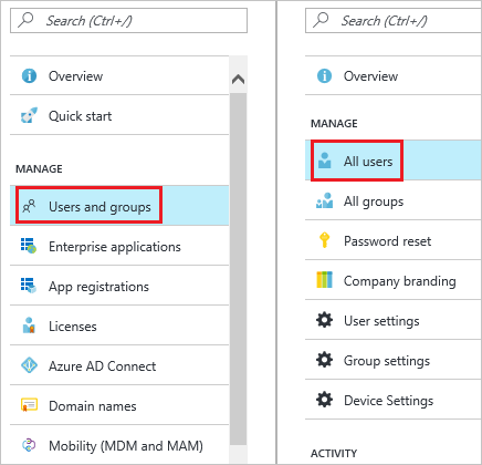 - 转到“用户和组”,单击“所有用户”显示用户列表。