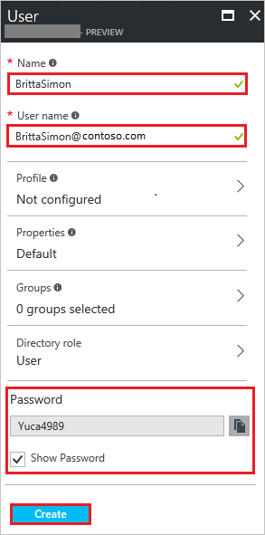 本部分的目的是在 Azure 门户中创建名为 Britta Simon 的测试用户。