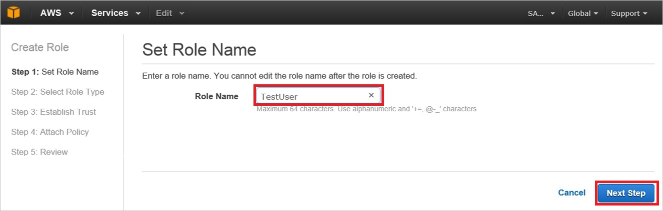 a. 在“角色名称”文本框中,键入角色名称(例如:TestUser)。