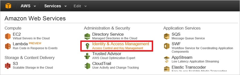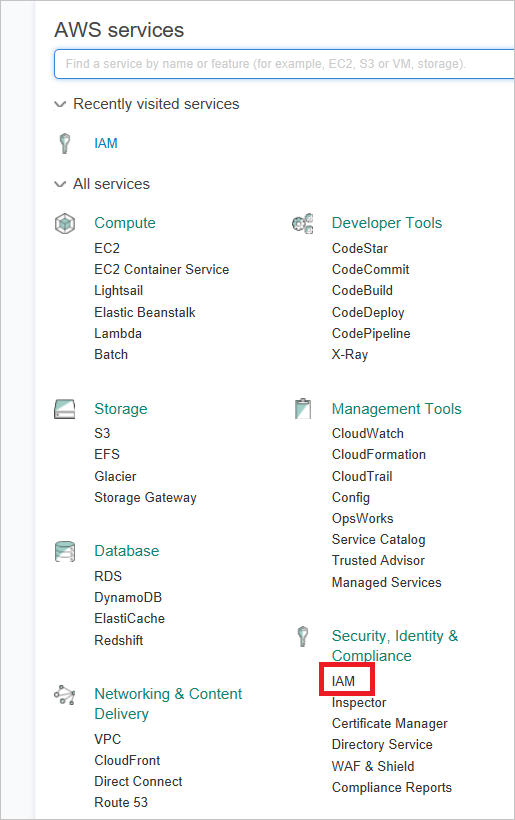 - 从安全性、标识和合规性服务中单击“IAM”。