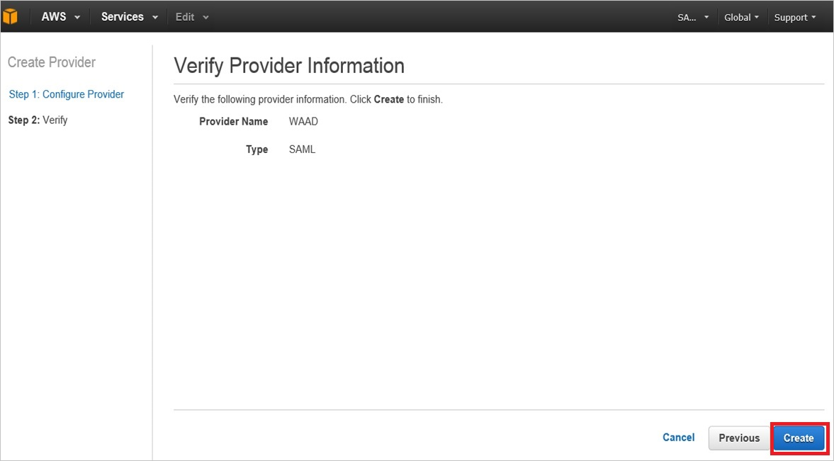 - 在“验证提供者信息”对话框页上,单击“创建”。