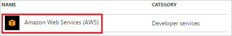 - 在应用程序列表中,选择“Amazon Web Services (AWS)”。