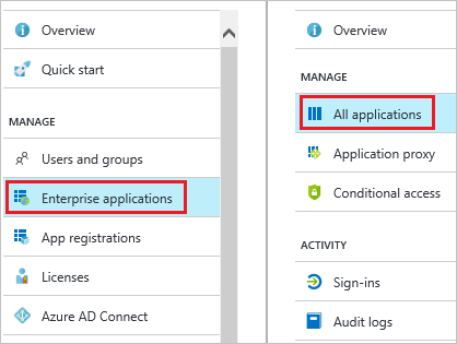 - 在 Azure 门户中打开应用程序视图,导航到目录视图,接着转到“企业应用程序”,并单击“所有应用程序”。