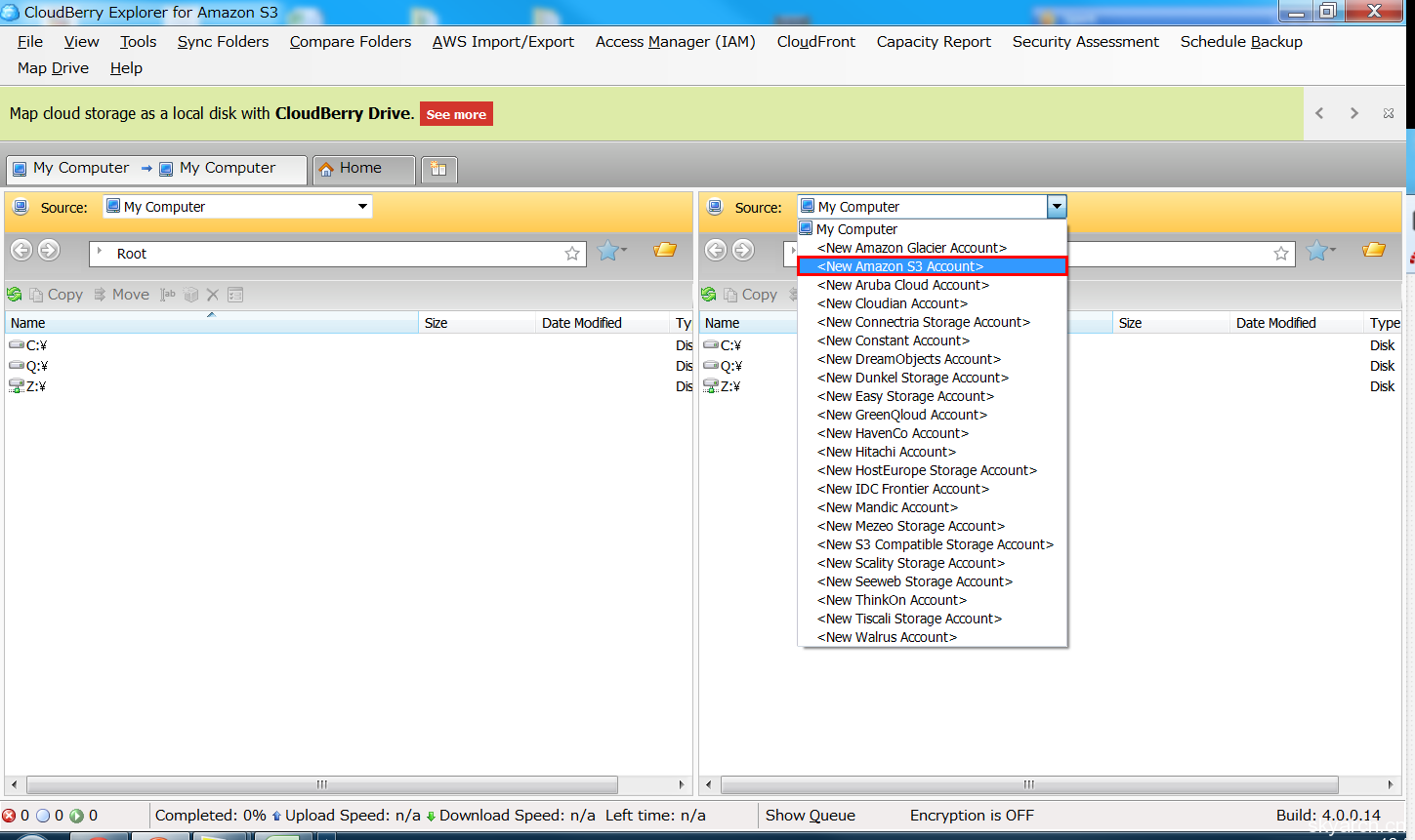 使用CloudBerry Explorer,从Amazon S3下载数据或者把客户端的数据上传到Amazon S3。