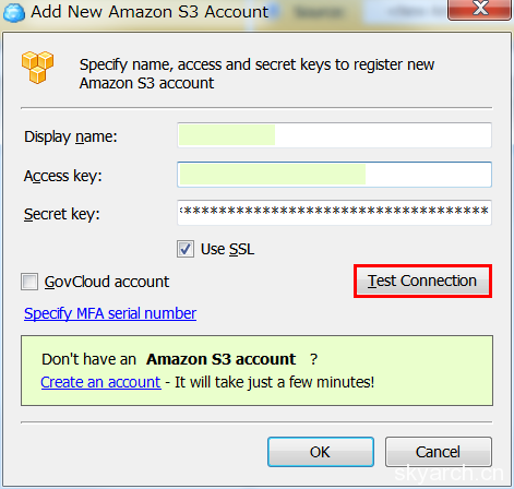 3-2 输入「Display Name」「Access key」「Secret key」以后,点击「Test Connection」