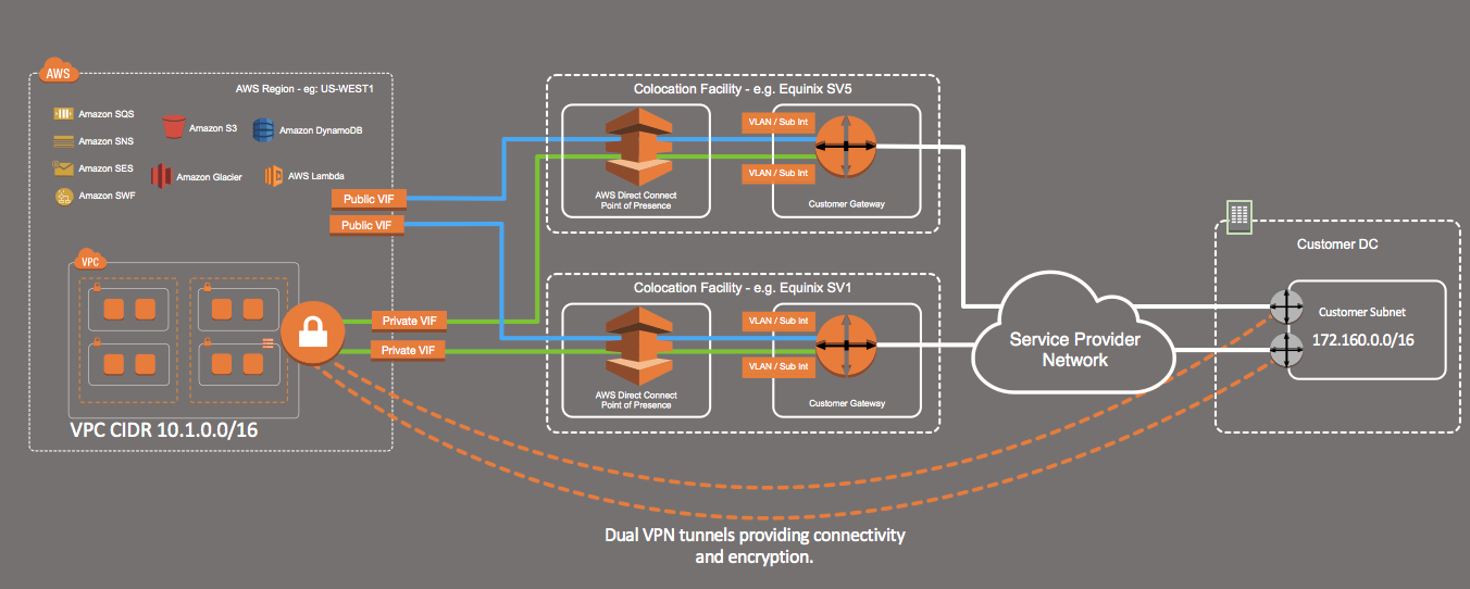 AWS Direct Connect(简称DX专线)为企业上云提供了专线接入能力,能够全时段、全方位的保障用户数据传输隔离加密,并保证可用网络带宽,用户无需担心容量太大而无法承载的问题。