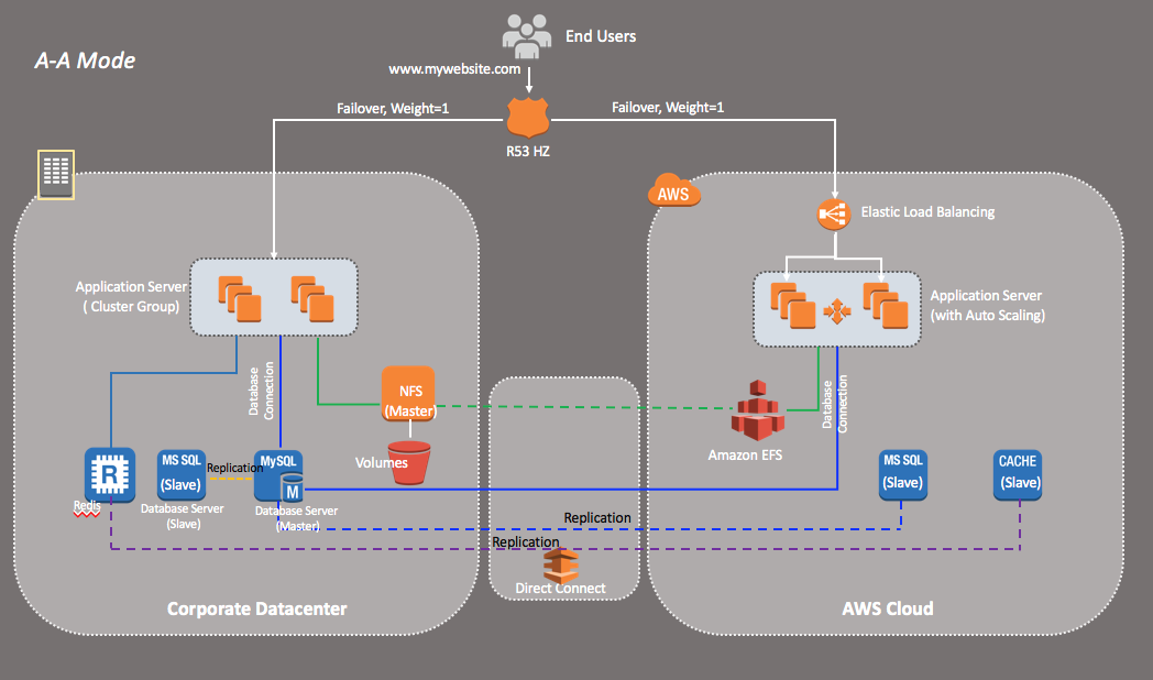 AWS的混合云容灾架构,就是在AWS的云环境中实现“两地三中心”,同时利用AWS云中资源的弹性大幅度降低资源成本和建设以及运维的复杂性。AWS云资源池通过软件定义的方式,能够打造与企业内部完全相同的复杂IT环境,实现企业级应用的完整镜像。