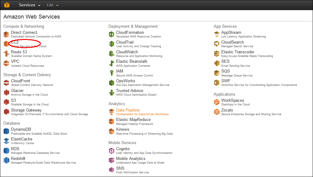 1.登录到AWS管理页面以后,点击EC2。