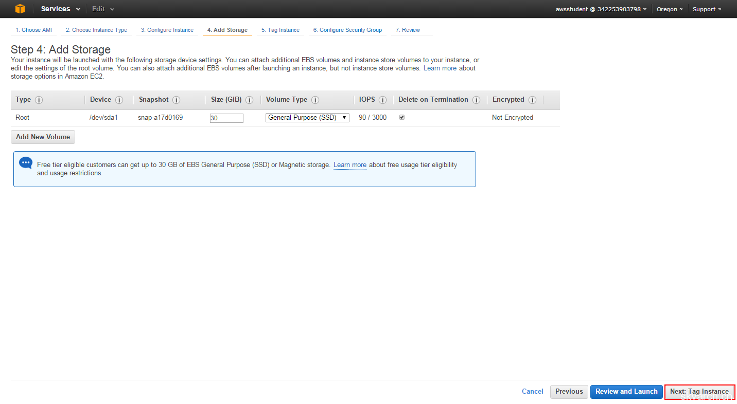 6.如有需要可增加Strorage,这里为默认。点击「Next: Tag Instance」进行下一步。