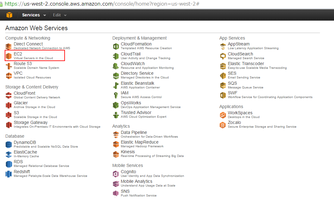 1.登陆AWS管理页面后,点击打开EC2画面。