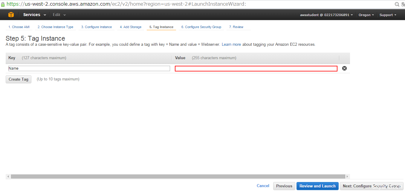 7. 创建实例名字,如需创建实例名字,请在「Value」处填写。这里默认。点击「Next: Configure Security Grep」进行下一步。