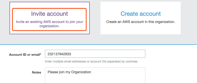 在创建完Organization之后,添加账号到Organization下有两种方式