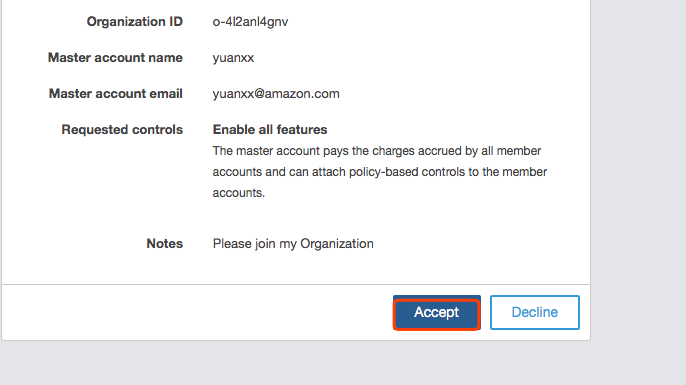 2.2 被邀请的AWS账户可以选择接受或者拒绝邀请