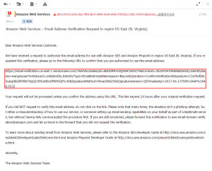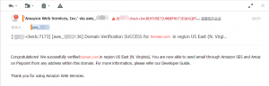 In order to send to anyone else, you must move your account out of sandbox mode by contacting AWS support and requesting it.(为了能发送给你其他人,你必须通过联系AWS的支持将账号从沙箱模式移除。)