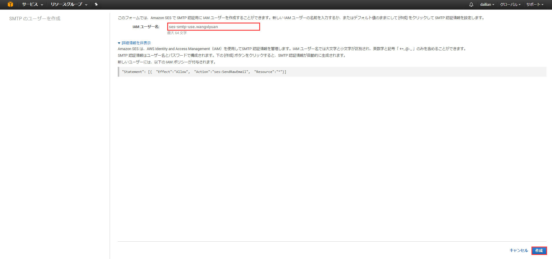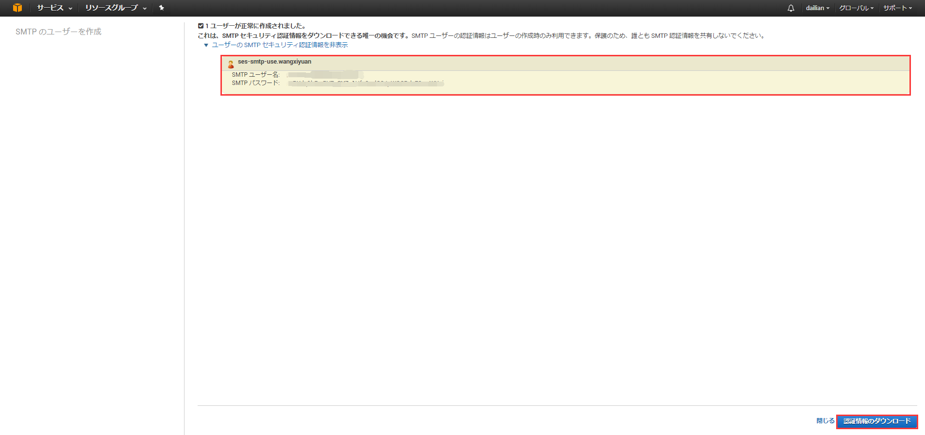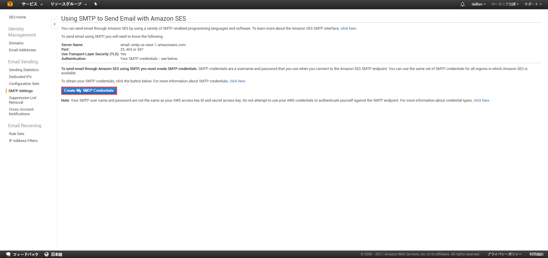 Create My SMTP Credentials(创建SMTP凭据) |