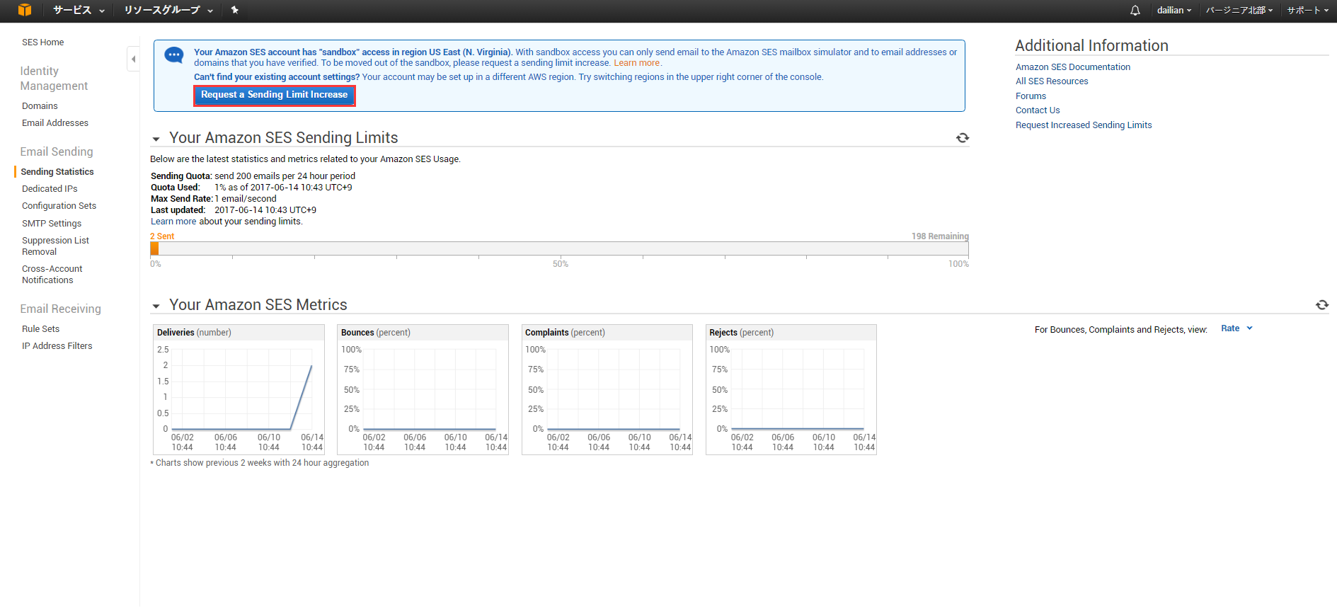 Request a Sending Limit Increase(向AWS请求发送限制增加) |