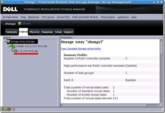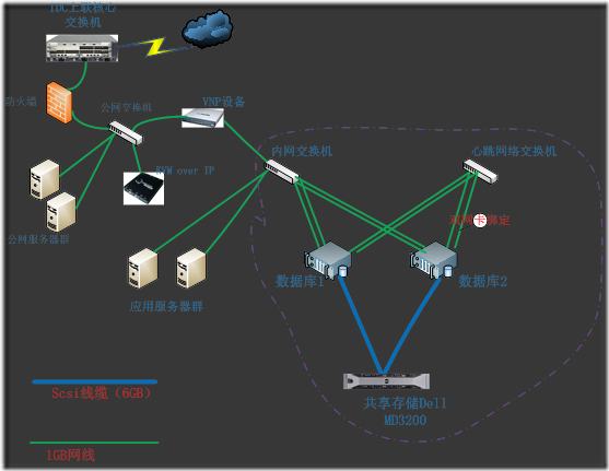 2、存储:dell MD3200 一台。双控制器,12块600G 15000转sas硬盘。为追求最高可用性,使用的raid级别是raid10.