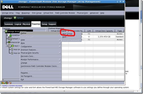 5、虚拟磁盘映射到主机,目的是要连接到阵列的主机都能访问到虚拟磁盘组