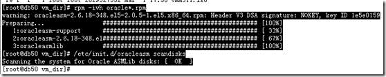 [root@db50 ~]# /etc/init.d/oracleasm scandisksScanning the system for Oracle ASMLib disks: [ OK ]