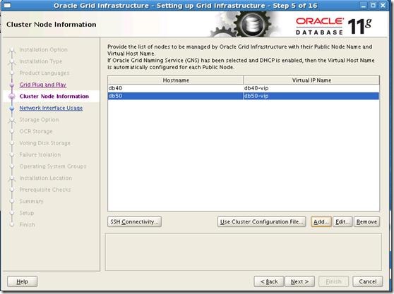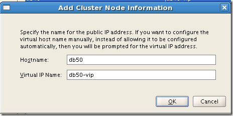 # Pubic 172.16.5.40 db40 172.16.5.50 db50 # Private 10.16.5.40 db40-priv 10.16.5.50 db50-priv # Virtual 172.16.5.41 db40-vip 172.16.5.51 db50-vip # SCAN 172.16.5.55 db1-scan