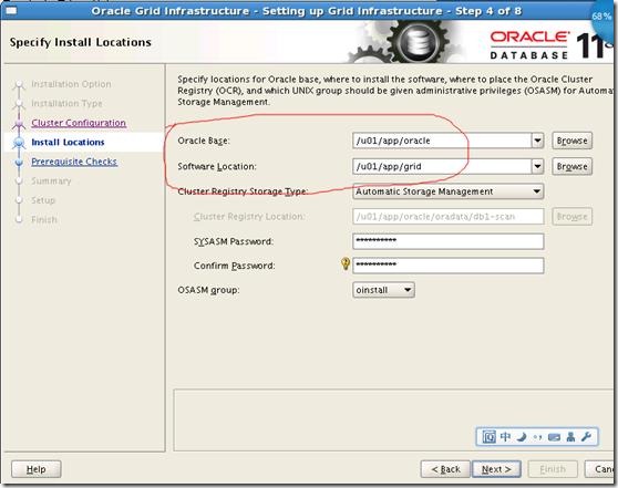 往下一步的时候,需要输入asm的一个密码。密码在前天的grid安装设定的哟,要记牢。